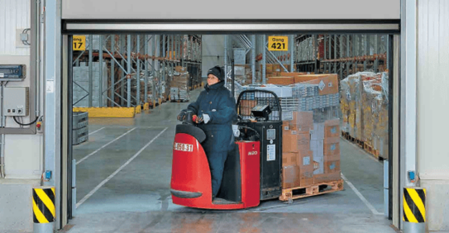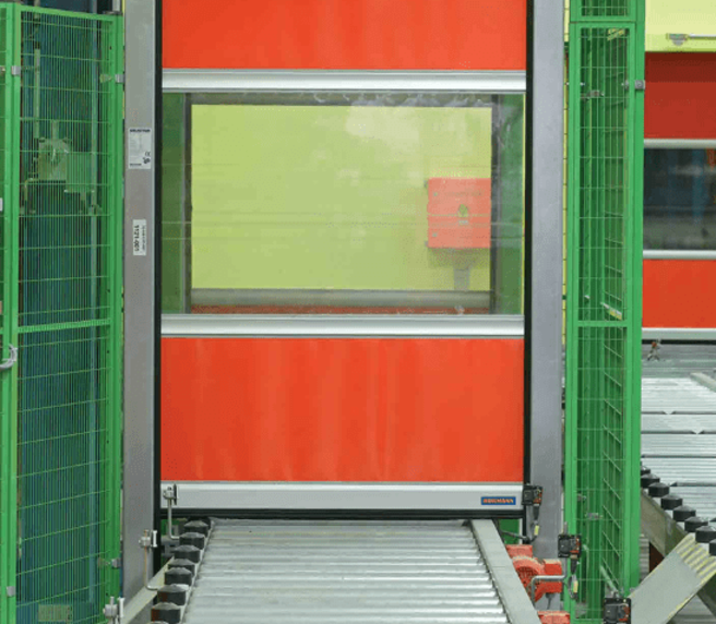 The V 3009 is installed between the operating sections and the storage areas within the conveyor system to conserve energy and diminish drafts and noise. It’s engineered for highly frequent automated opening and closing cycles. The door control can be seamlessly integrated into existing PLC systems. A volt-free contact reports the door position (open/closed) to the control system.