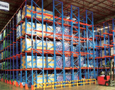 The most preferred solution to conventional block stacking where pallets simply cannot be stacked on top of each other. It is yet another solution to optimize warehouse space, maximizing storage capacity and reducing the number of aisles. Drive-in racking system is ideal for the storage of homogenous products and in applications where goods are dispatched in batches.